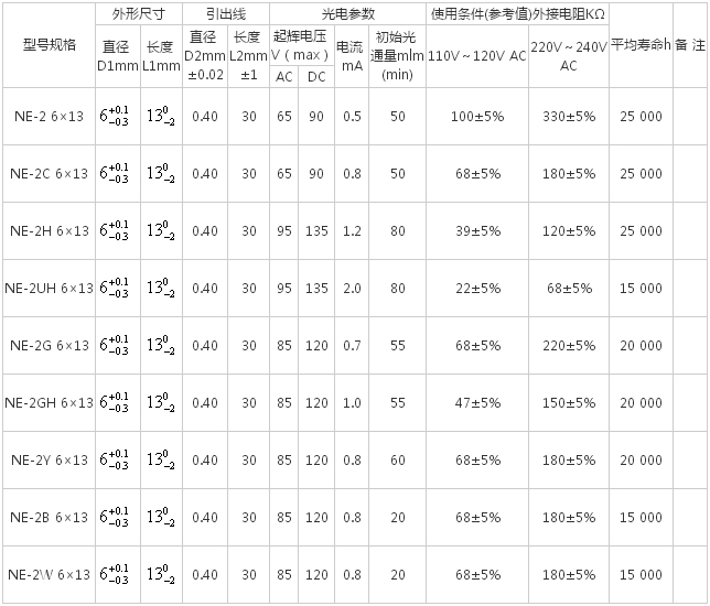 氖燈規(guī)格